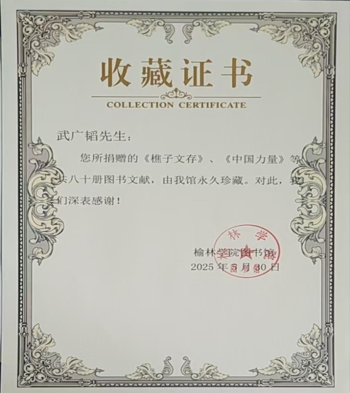 据悉,王雪樵嫡孙武广韬,1981毕业于我校化学系,现为陕西富能律师事务所主任律师。先后获“全国优秀律师”“陕西省首届十佳律师”等荣誉称号。曾任榆林市四届人大代表、法制委员会委员、陕西省六届律协副会长、榆林市四届律协会长等。有数十篇学术文章发表于省级以上专业期刊。同时也是我校兼职教授。他深受祖辈父辈家国情怀的影响,作为母校学子,长期关心支持母校发展,积极热心参与学校公益活动并多次捐赠图书。