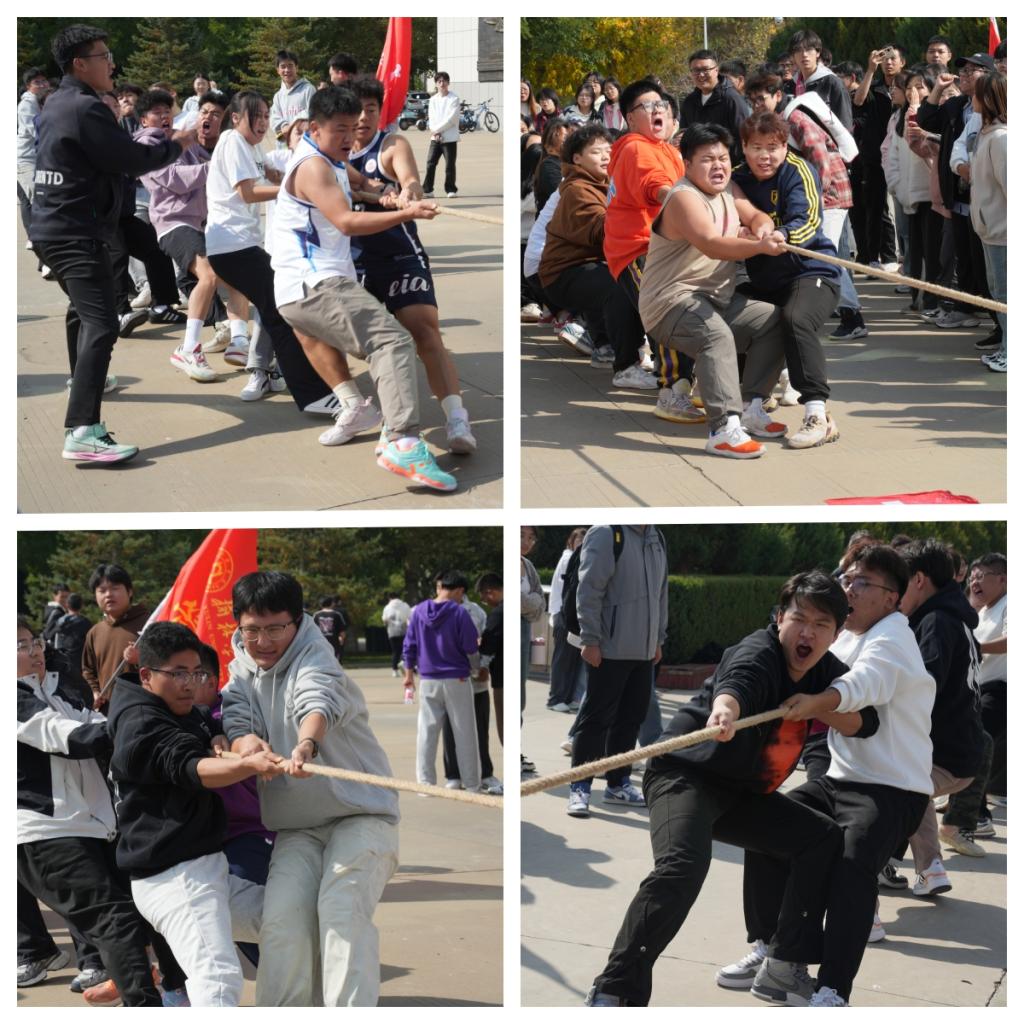 本次比赛各二级学院共组建15支代表队,近300余名学生参加,分为初赛、复赛和决赛三个阶段,比赛采用淘汰制,分组进行。参赛队员本着“友谊第一、比赛第二”的原则,双方队员个个精神抖擞、凝心聚力,双手紧紧握住绳子,调整站姿,摩拳擦掌,周围的拉拉队员们凝神屏息,期待着精彩的表演。随着比赛哨声响起,参赛队员们紧握长绳,压低重心,卯足了劲往后拉,队员们一起高喊着“一二、一二”,使出浑身解数,拼尽全力想要赢得比赛。拉拉队员们也在为比赛队员们大声呐喊加油,现场氛围紧张激动。一次又一次的拖拽后移,一声又一声的助威呐喊,赛场上的角逐瞬息万变,激烈的对阵牵动着在场每个人的心。在胜负难解难分时,大家咬紧牙关,奋力拼搏,一直坚持到最后,尽显榆苑学子青春风采。