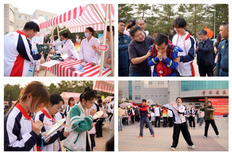 启动仪式结束后,榆林大学副校长卜耀军与各位领导嘉宾在相关部门负责人陪同下亲临志愿服务互动展示区,与参与活动的学生亲切交流,详细了解各类志愿体验项目开展情况,对学子们的奉献热情与创新实践给予充分肯定。展示区内,各二级学院紧扣专业特色,联合打造了形式丰富、内涵多元的志愿体验活动,涵盖手工创作、科普互动、便民服务、非遗文化体验、法治宣传、益智实践等多个品类,真正实现专业所学与志愿服务深度融合,充分展现了各学院的育人特色与榆大学子的青春担当。此外,榆林市红十字会、榆林市公安局交通管理支队二大队、榆林市蓝天救援队等多家校外单位同步到场设展,带来涵盖健康医疗、交通安全、应急救援、无偿献血、金融安全等多领域的一站式便民志愿服务,通过现场演示、知识宣讲、实操教学等多样形式,将实用技能与暖心服务送到师生身边,让雷锋精神在沉浸式实践中真正落地生根、蔚然成风。
