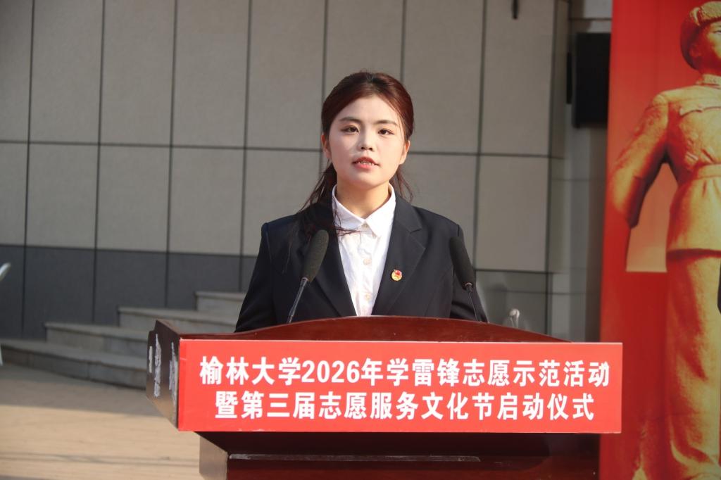 志愿薪火相传,青春使命在肩。榆林大学2026年学雷锋志愿示范活动暨第三届志愿服务文化节启动仪式的圆满落幕,既是对过往志愿服务成果的深情回望,更是对新时代志愿精神的全新启航。站在从“榆林学院”迈向“榆林大学”的全新历史起点,我校青年志愿者们将以此次活动为契机,深学细悟雷锋精神的时代内涵,把“奉献、友爱、互助、进步”的志愿精神融入青春血脉,在校园服务、社区帮扶、赛事保障、公益实践等广阔舞台上勇担使命、笃行实干,以青春之我、奋斗之我书写新时代雷锋故事,为学校高质量发展注入青春动能,为建设文明和谐社会贡献榆大力量。
