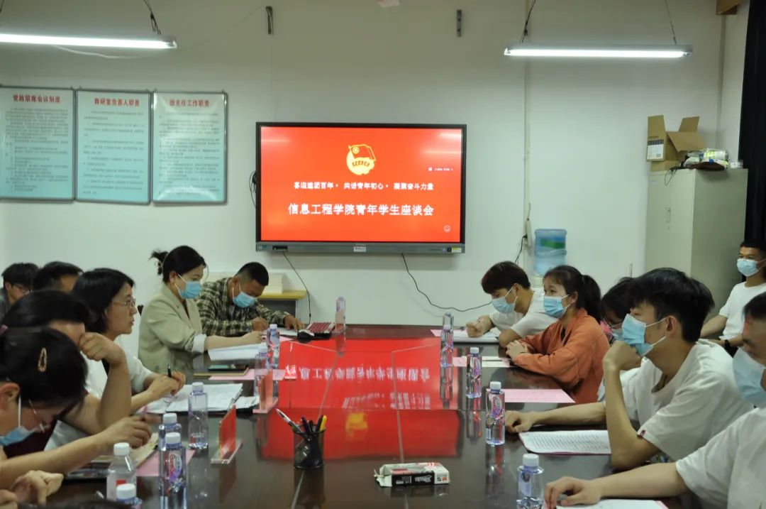 为庆祝建团100周年,弘扬爱国、进步、民主、科学的五四精神,信息工程学院于2022年5月8日,在系楼会议室举行了主题为“喜迎建团百年,共话青年初心,凝聚奋斗力量”的青年学生座谈会,引导广大青年学生奋进新征程、建功新时代,以实际行动迎接党的二十大胜利召开。党总支书记张烨、副院长封蕾、张峰以及全体辅导员、班主任和学生代表及学生会骨干参加会议,由信息工程学院团总支书记马腾主持。