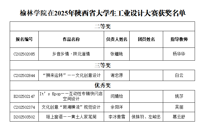 近日,由陕西省教育厅主办的2025年陕西省大学生工业设计大赛落下帷幕,榆林学院学子凭借扎实的专业功底与创新的设计思维,在全省高校的激烈角逐中脱颖而出,一举斩获二等奖 1项、三等奖1项、优秀奖3项,展现了学校在工业设计人才培养领域的突出实力。