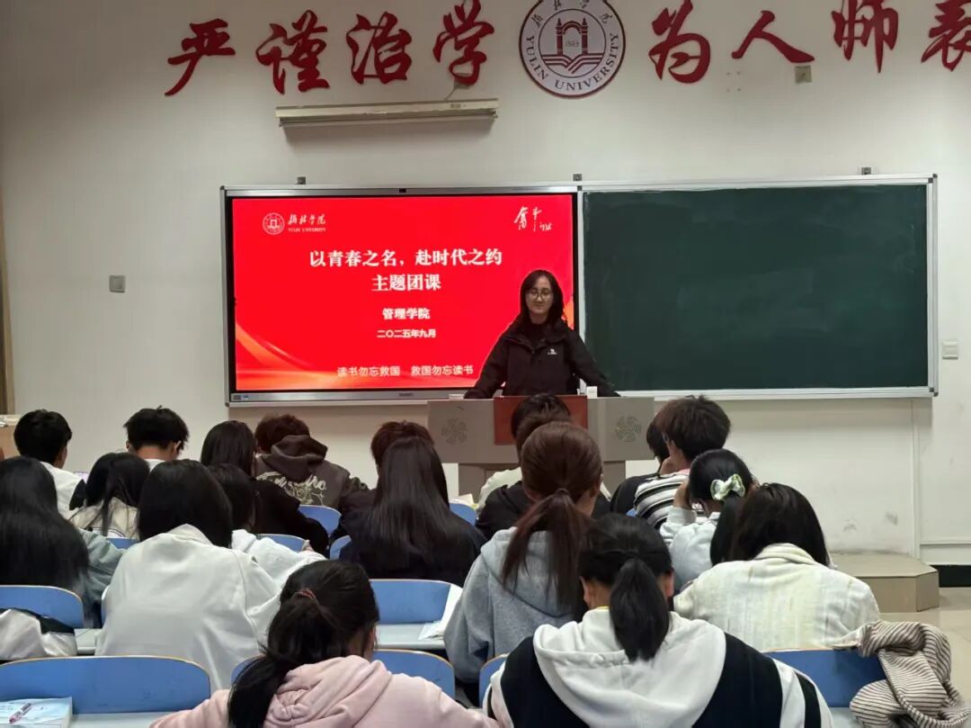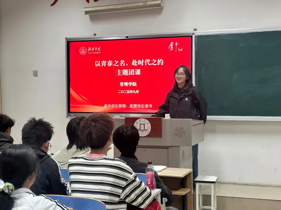 青春,是人生中最具朝气与活力的时光;时代,是青年成长与奋斗的宏大舞台。为引导广大青年勇担时代使命,让青春在时代浪潮中绽放光彩,管理学院团总支副书记田蕊于2025年9月28日晚在六号楼402教室组织开展“以青春之名,赴时代之约”主题团课活动。
