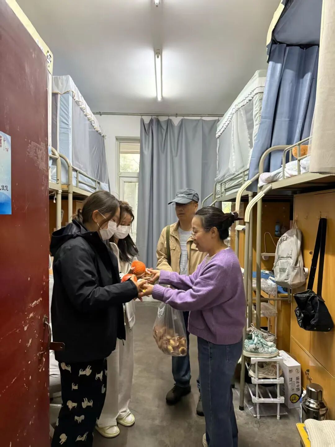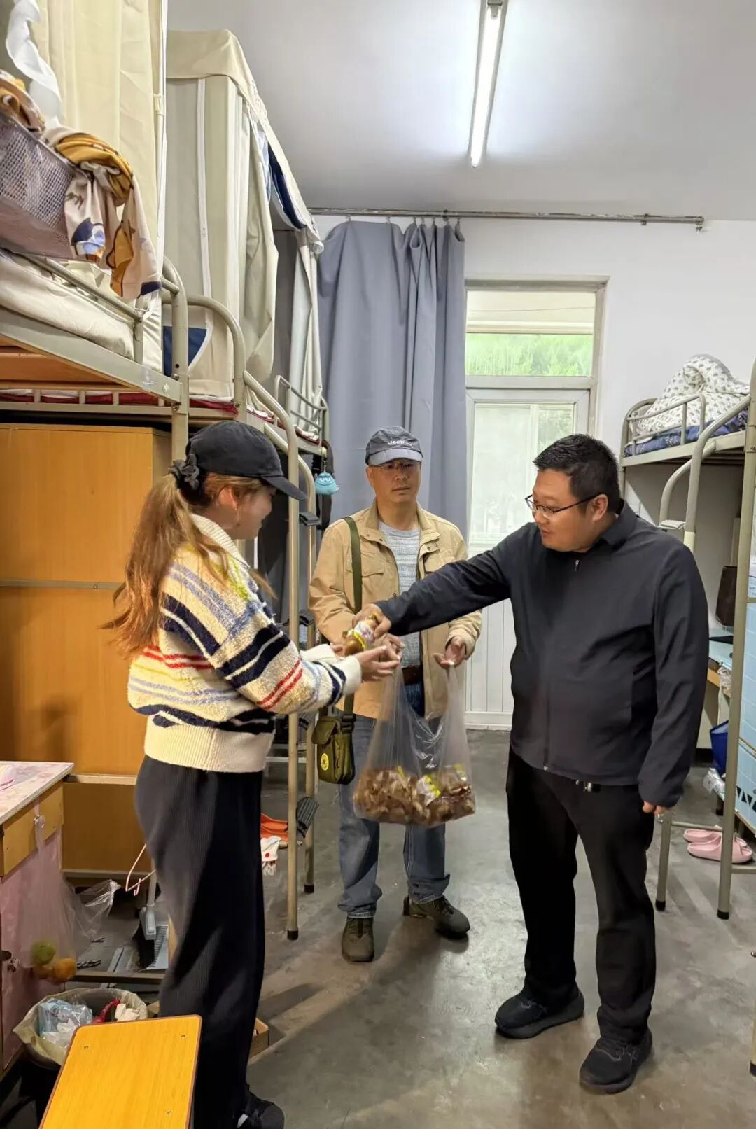 宿舍内,师生分享月饼,分享节日习俗;一袋袋水果、一份份月饼被轻轻送到学生手中,传递着“异乡亦如家”的深情。精心准备的慰问品不仅承载着节日的仪式感,更让留校学生感受到“此心安处是吾乡”的归属。