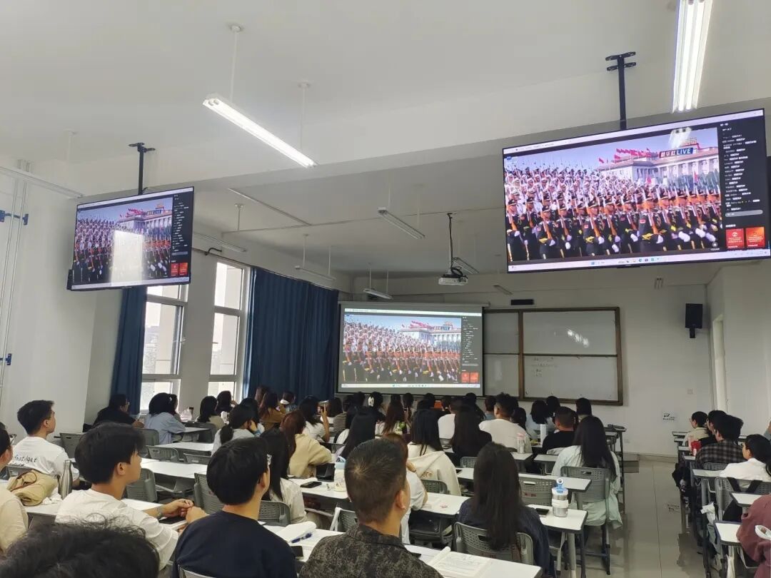 9月3日上午9时,纪念中国人民抗日战争暨世界反法西斯战争胜利80周年大会在北京天安门广场隆重举行。教育学院党总支组织全体师生在2207会议室、子州楼教室收看了中共中央总书记、国家主席、中央军委主席习近平的重要讲话,并全程观看了阅兵盛况。
